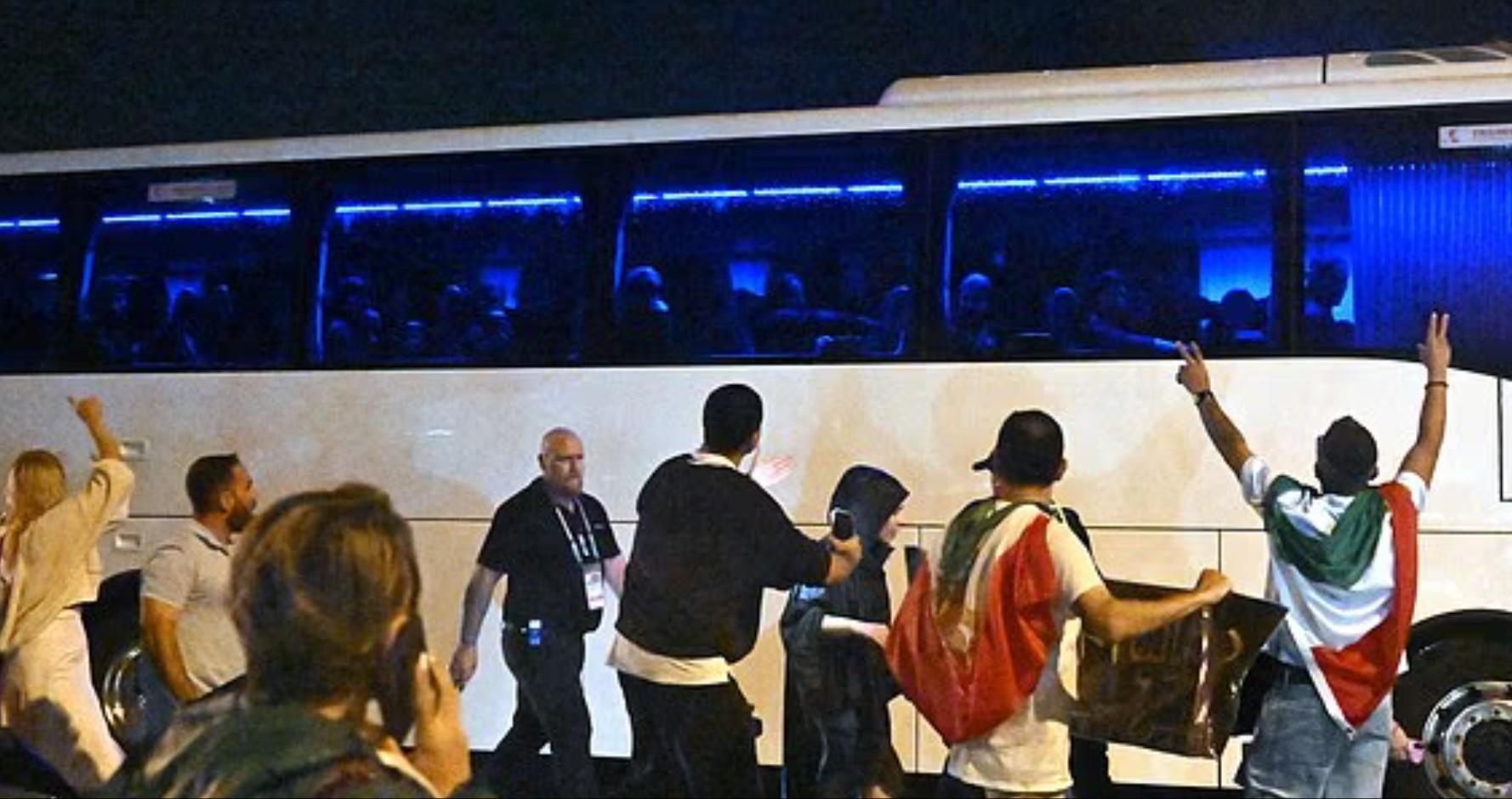 就在大巴缓慢驶离现场时,有画面捕捉到伊朗球员在车内向外拍摄抗议现场,同时也有人做出疑似国际上常见的“求救手势”。这一细节被不少网友解读为球员向外界传递求助信号,相关视频很快在网络上传播,引发热议。