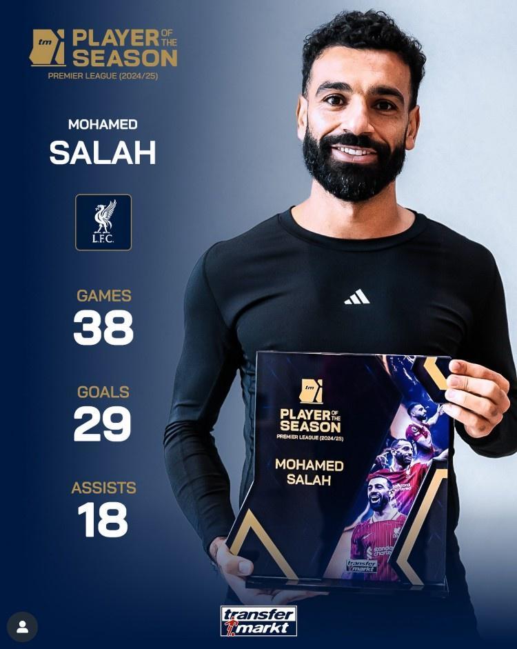 直播吧9月12日讯 萨拉赫被德转评选为上赛季英超最佳球员,他也收获了德转赠与的荣誉奖杯。萨拉赫在上赛季为利物浦出战的38场英超比赛中打进29粒进球,并送出18次助攻。...